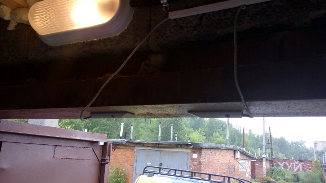 Поскольку на объекте присутствовала сеть 220V, нам удалось установить охранную сигнализацию не только для защиты первого рубежа (датчик открытия входной двери), но и для охраны внутреннего пространства гаража (датчик движения).